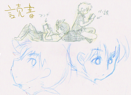 いつもと違うアングル練習と思って書き始めたはいいものの、某ドラマCDのジャケット絵を参考にしたわりにはなかなかうまいコト行かずでした。脚が。ていうか脚の辺りまで書かれてなかったという。