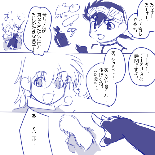 一応「続き」に隠しときます。いっこしたのエントリのつづき。そしてこのread moreのつづきが上のオチ落書きです。わっかりにっくー。
