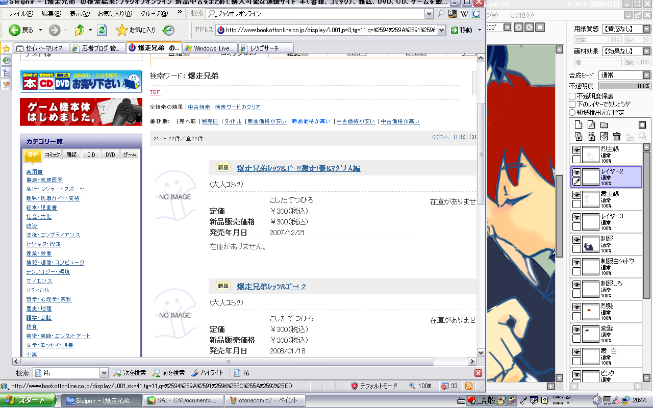 ブックオフオンラインでの、「爆走兄弟」の検索結果だ。