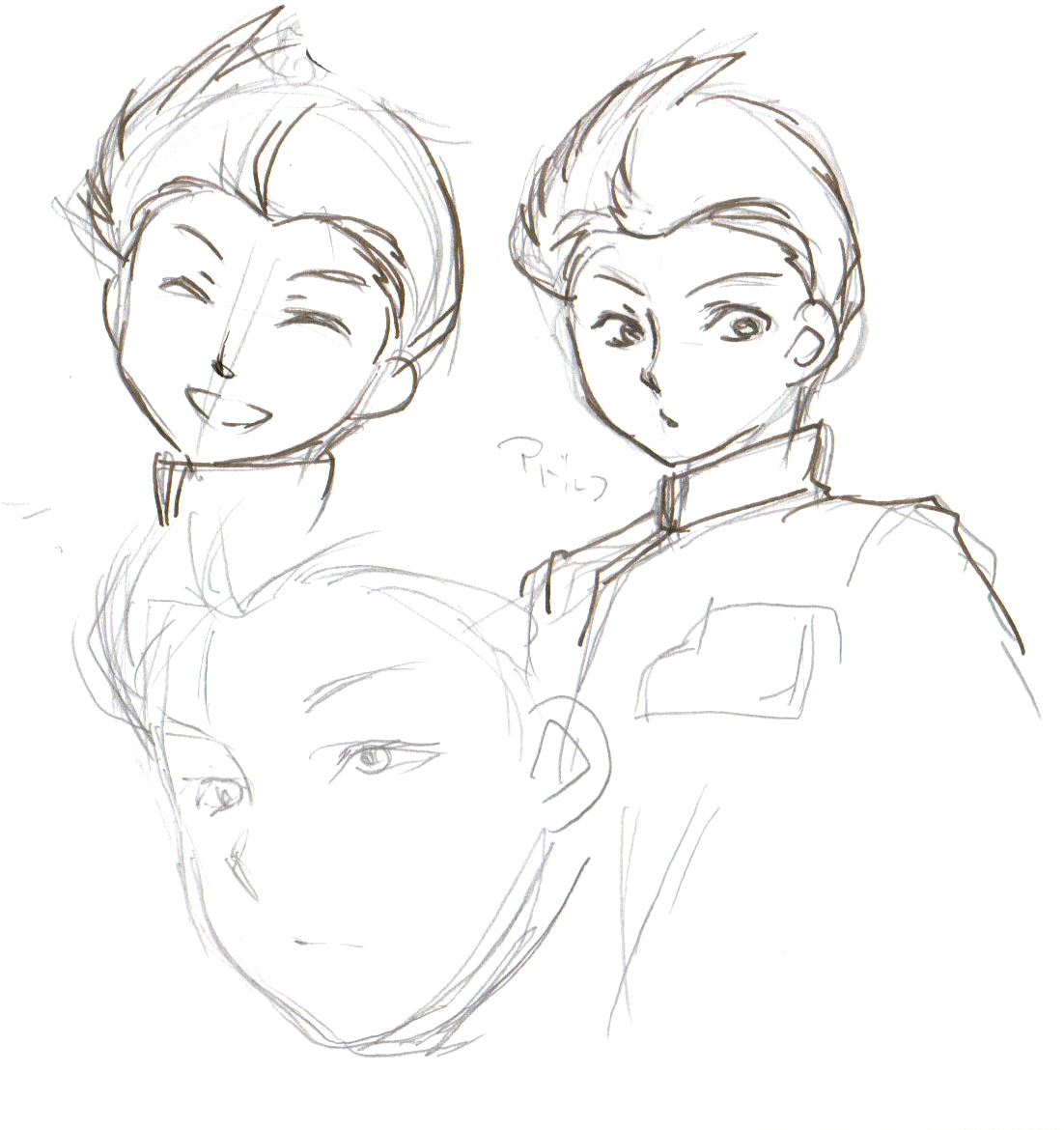 あと受けっぽいブレットを書いてみようと思ったら、オドロキくん(逆裁)見たいになってしまった。あと右向きかけないから練習してた。反転絵をなぞるほうが練習になるのかなー。