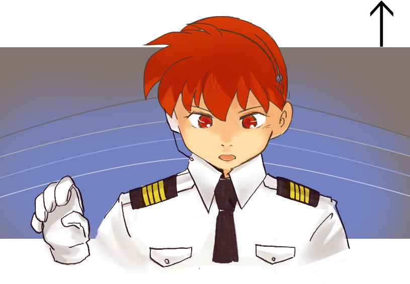 袖の四本線、肩の四本線、帽子のつばの紋章が機長(正操縦士・パイロット)のしるしだそうです。